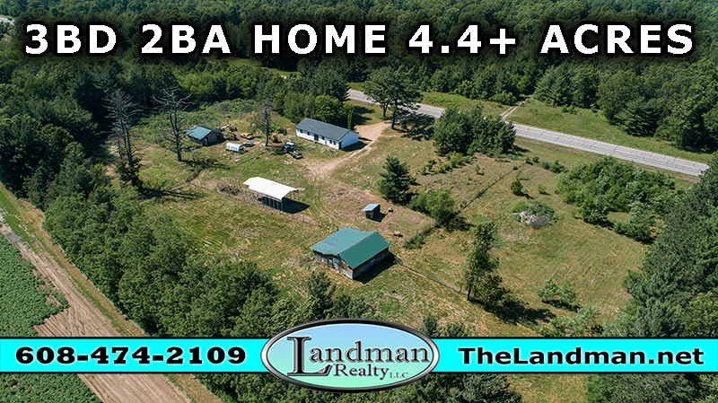 Adams County WI Properties for Sale Houses Homes Land, HOT PROPERTIES, NEW Property, Properties, Wisconsin Homes for Sale Wisconsin Country Home with Barns Outbuildings Greenhouse Wildlife Pond for Sale - Barn | 4.44 Acres | 3 bedroom home needs work | 2 bathrooms | Wildlife Pond | Woods | Orchard | Outdoor recreational area | Greenhouse | Outbuildings | Outdoor Wood Furnace Hookup | 30' x 80' Gravel pad | Come to the country & live more self sufficiently ! Lots of possibilities...Wisconsin Country Home with Barns Outbuildings Greenhouse Wildlife Pond for Sale